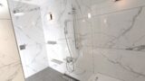 以下の通り、サブウェイタイルとレインシャワーを追加し、モダンな浴室に生まれ変わりました。